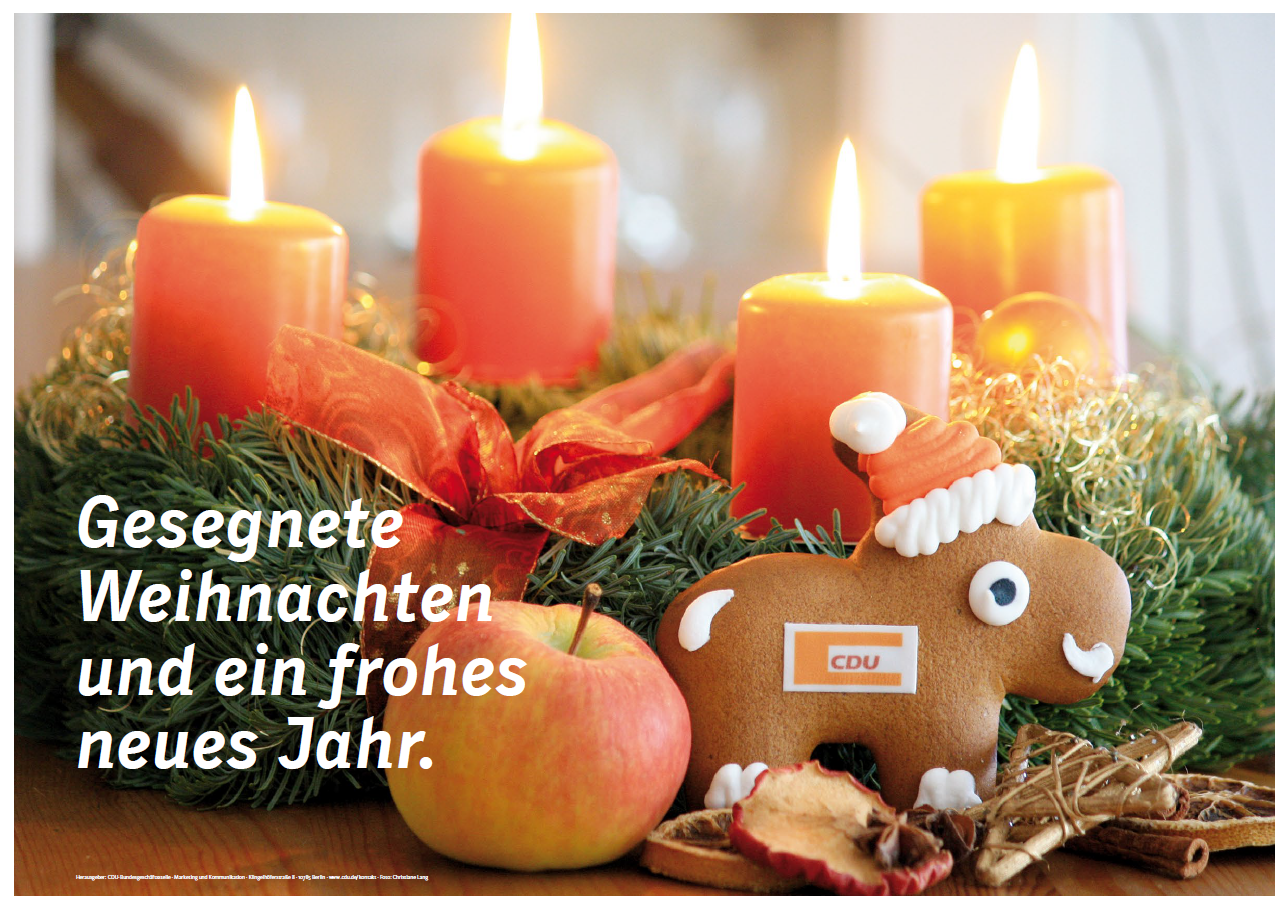 Der CDU Stadtverband wünscht Ihnen ein gesegnetes Weihnachtsfest und einen guten Start ins neue Jahr!